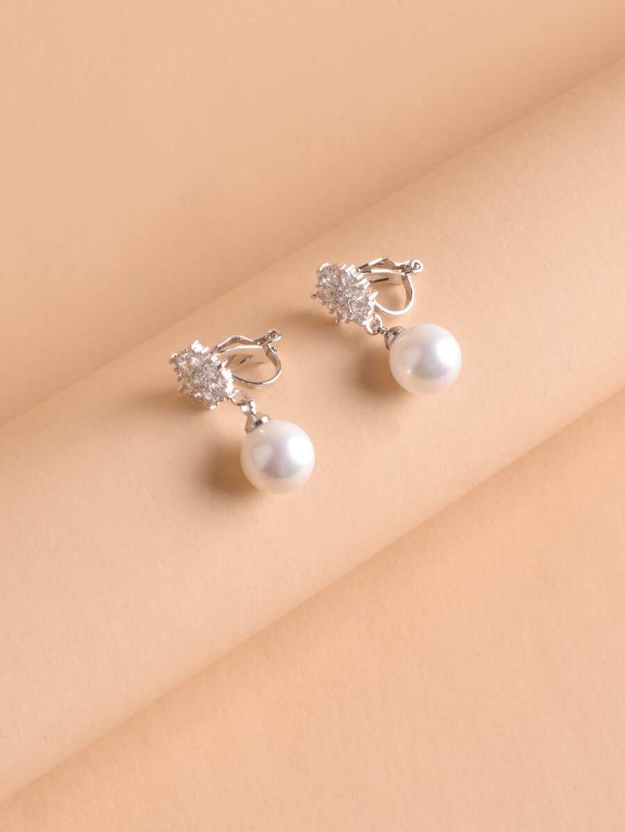 Rhinestone & Faux Pearl Decor Clip On Earrings