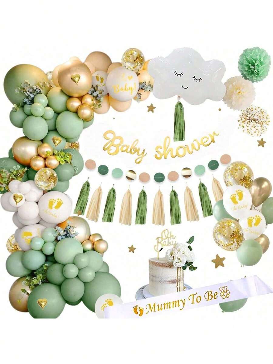 50pcs Baby Shower Balloon Set, Baby Shower Decoration Supplies Including Matte White Balloons, "Oh Baby" Print Balloons, Gold Metallic Balloons, Gold Glitter Balloons, Heart Balloons, 3pcs Paper Flowers, Gold "Baby Shower" Banner, Paper Tassels, Mommy-To-Be Sash, "Oh Baby" Cake Toppers