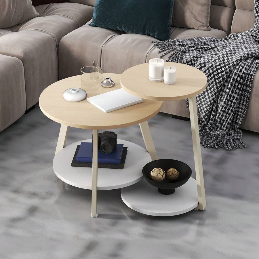 • Round Coffee Tables Set Of 2, Nesting Tables With Storage Space And Unified Style Design, Small Coffee Tables, Side Table, Natural Oak -By GeoTower - Natural Oak - View 10