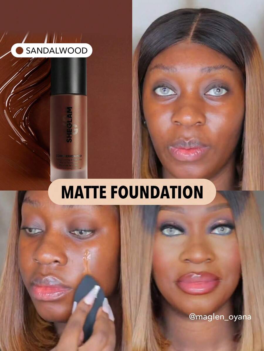 SHEGLAM Complexion Pro Long Lasting Breathable Matte Foundation-Sandalwood Matte Sweat-Proof Foundation Oil Control Full Coverage Pore-Less Concealer Waterproof Flawless Non-Fading Weightless Liquid Foundation Brand Beauty Makeup Face Paint Cosmetic For Women Girls Perfect For Winter Spring Ideal For Y2K Fancy Fashion Suitable For Birthday Gift Party Ready Best Color