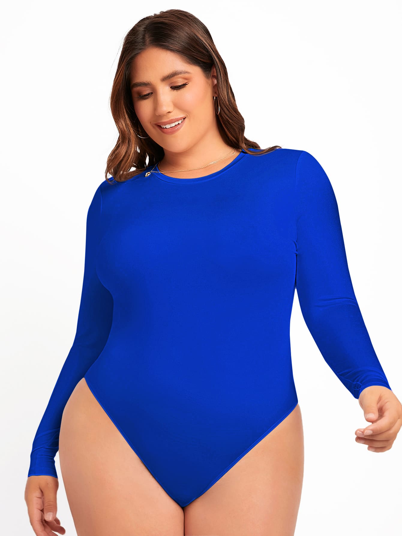 • SHEIN BAE Plus Solid Slim Fit Tee Bodysuit, For Winter - Royal Blue - View 6