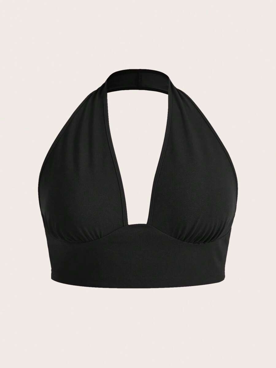 • SHEIN Essnce Plus Solid Halter Top - Black - View 2