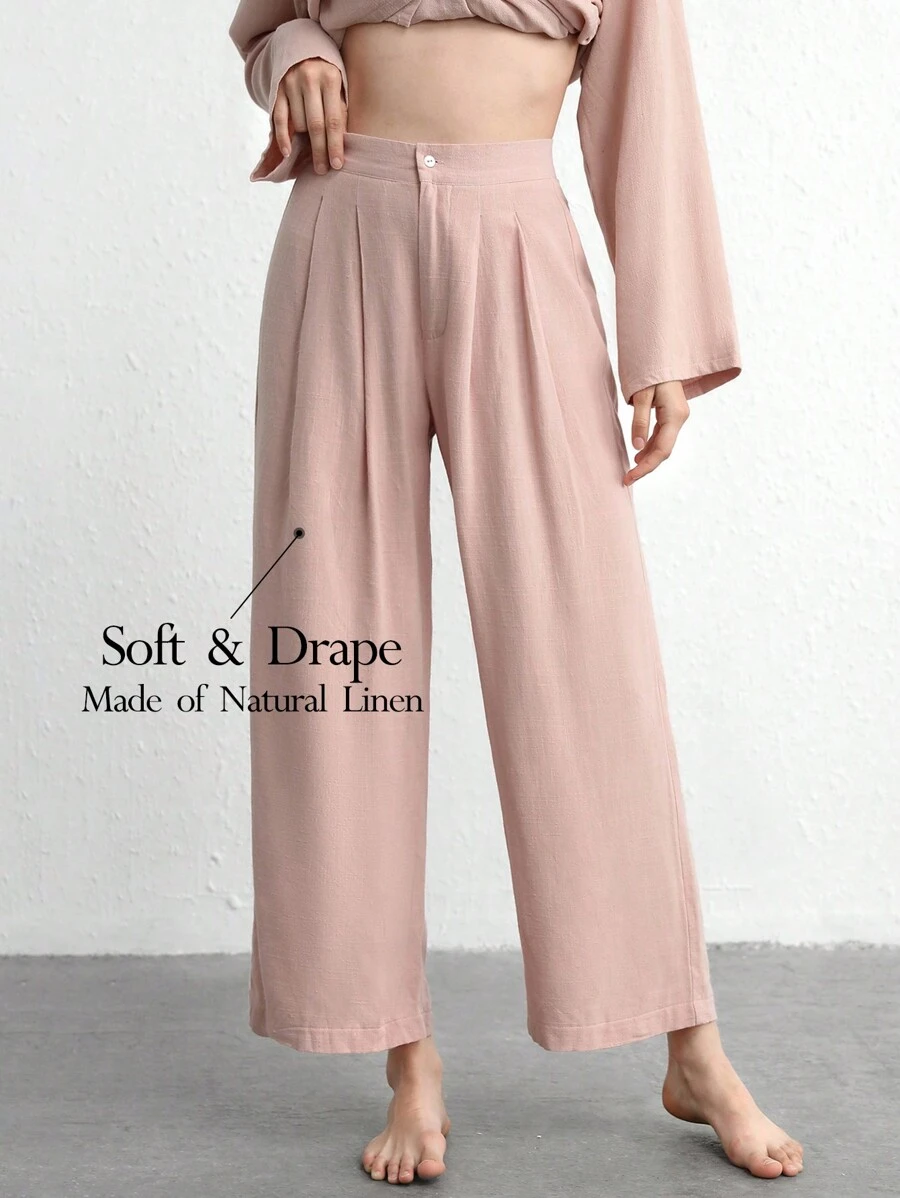 Ocili Leisure Natural Linen Comfy & Breathable Pink With Button Long Sleep Pant