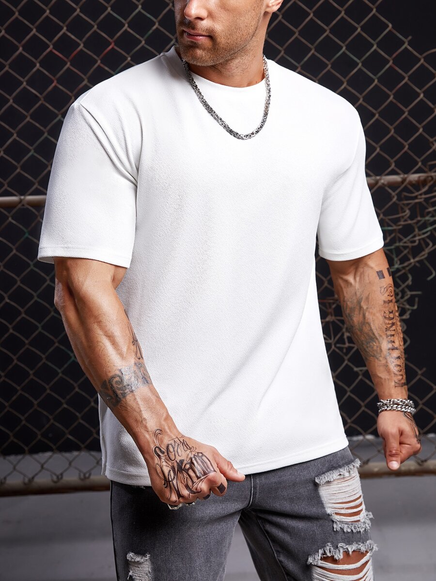 Manfinity RebelGame Men Casual Simple Solid Round Neck Tee