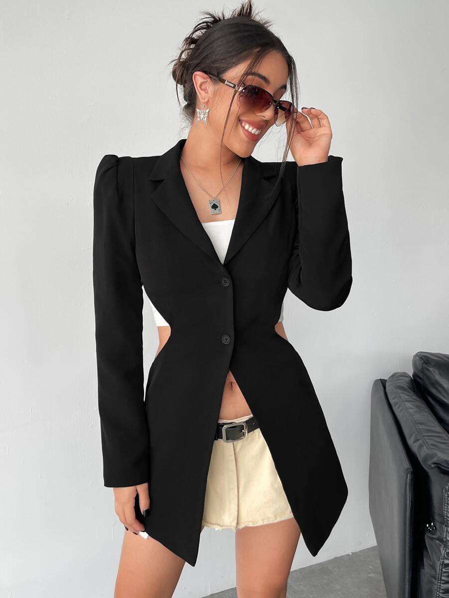 SHEIN Privé Cut Out Waist Single Breasted Blazer