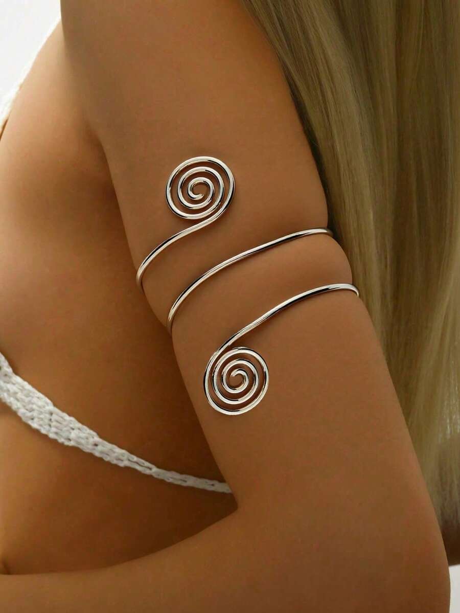 Silver Spiral Pattern Metal Arm Cuff Bracelet, Women's Daily Accessory