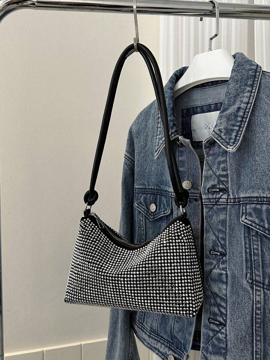 • Small Size Rivet Decor Messenger Bag, Punk Style Rhinestone Embellished Roomy Shoulder Bag For Travel, Party And Other Occasions , Goth - Bright silver - View 4