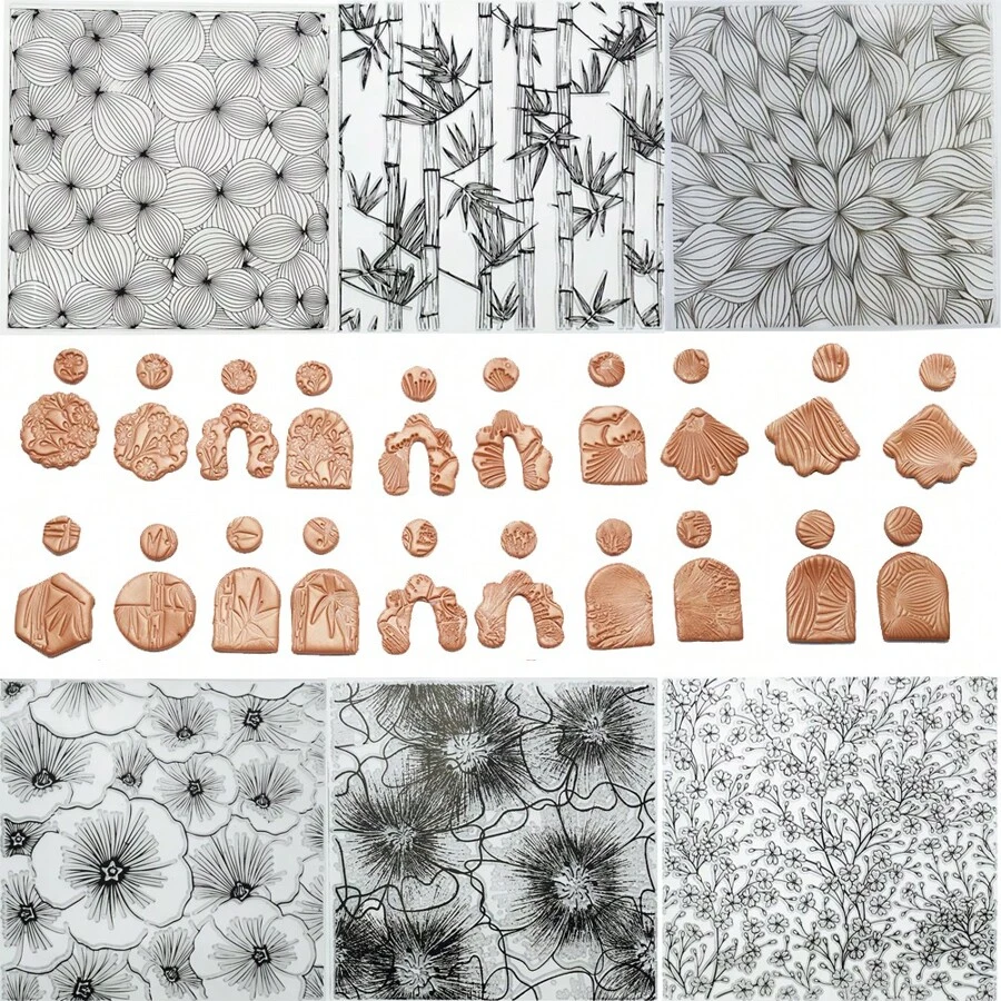 Soft Polymer Clay Stamp Sheet 3D Flower Banboom Wave Pattern Texture Embossing Mat For Clay Jewelry DIY Making Tools Pottery Ceramic Art Hobby Supplies Valentines