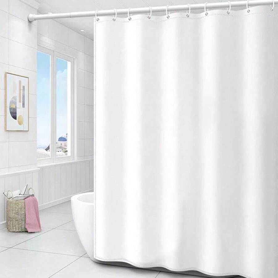 Solid Color White Waterproof Shower Curtain, Modern Polyester Partition Curtain, For Bathroom Home Bathroom Decor Fall Decor Bathroom Accessories Back To School