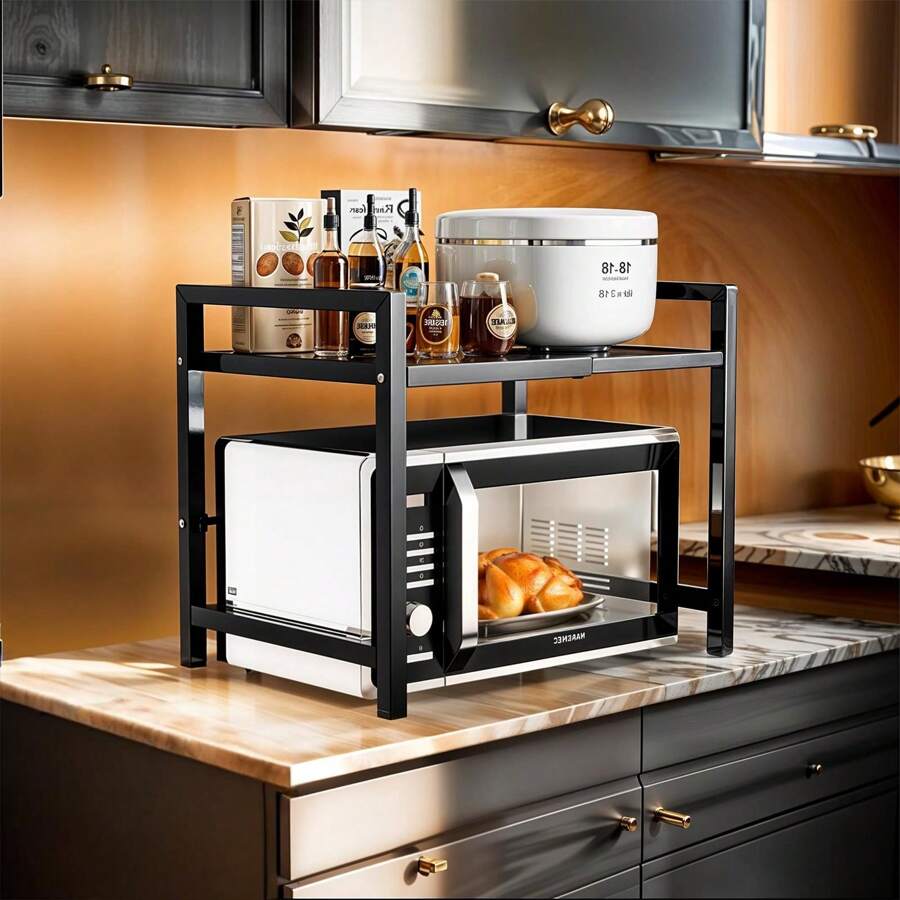 Space Saving Adjustable Metal Microwave Rack - Double-Layer Expandable Kitchen Countertop Organizer, Suitable For Ovens And Electric Pots, Perfect For Small Spaces