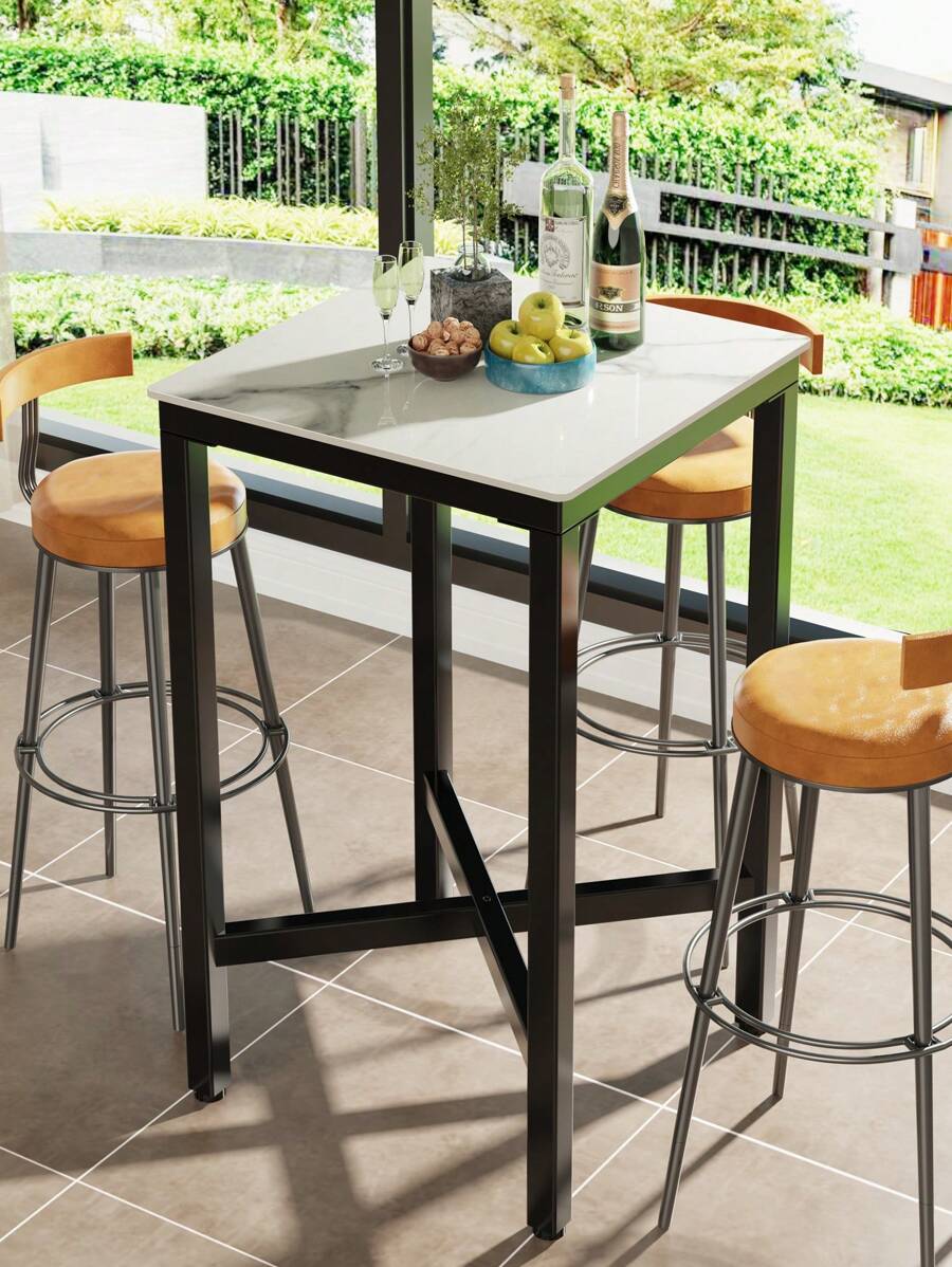 • Square Kitchen Bar Table Counter Breakfast Dining Table Black Coffee Table Metal Legs With Footrest For Kitchen Dining Room Patio - White - View 7