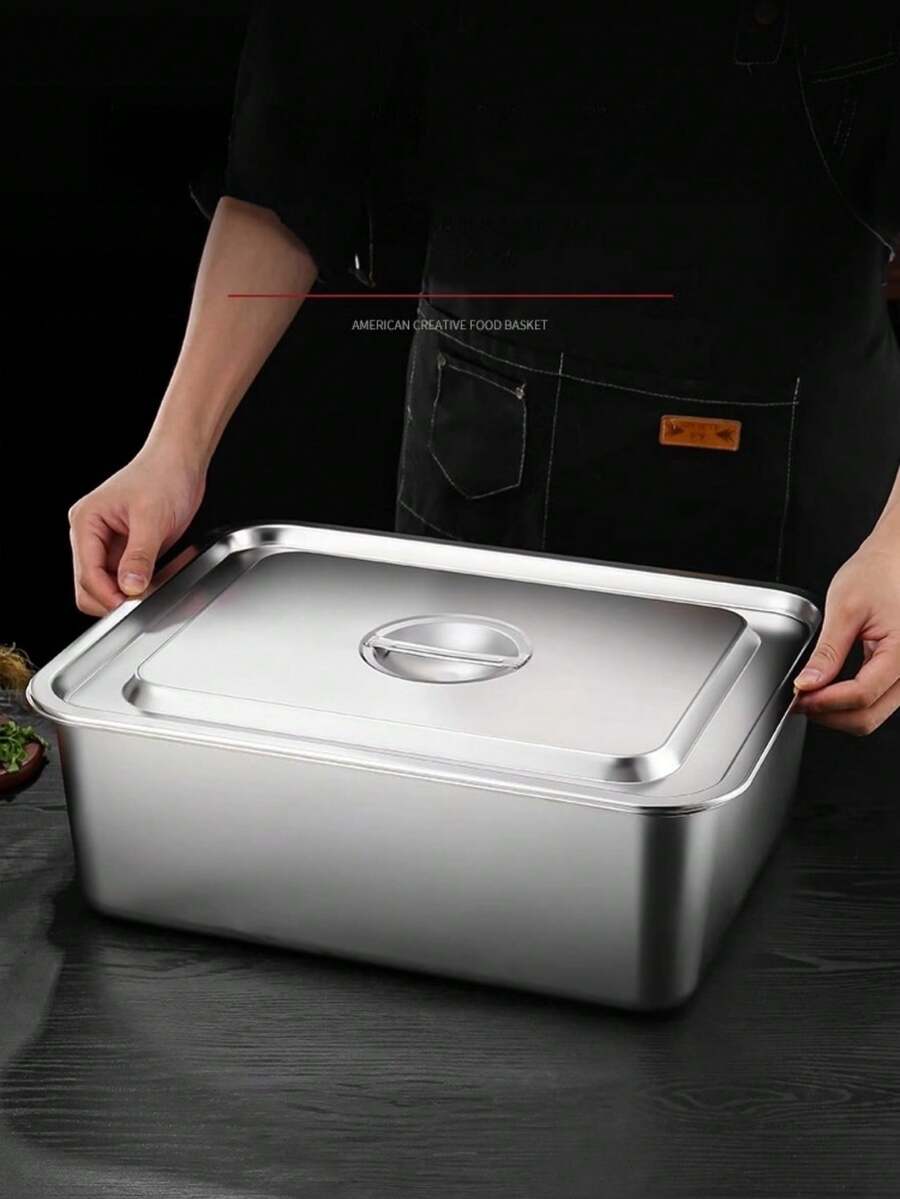 Square Stainless Steel Portion Bowls With Lids, Catering Salad Gravy Condiment Serving ContainersSchool Supplies,Back To School