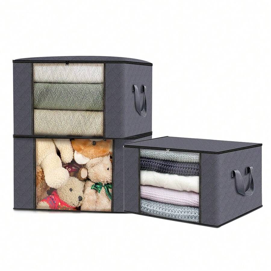 Storage 1 Pack Clothes Organizer Storage Bags Foldable Storage Box With Large Clear Window Sturdy Handles For Closet, Dorm, Pillows, Bedding, Clothes, Blanket