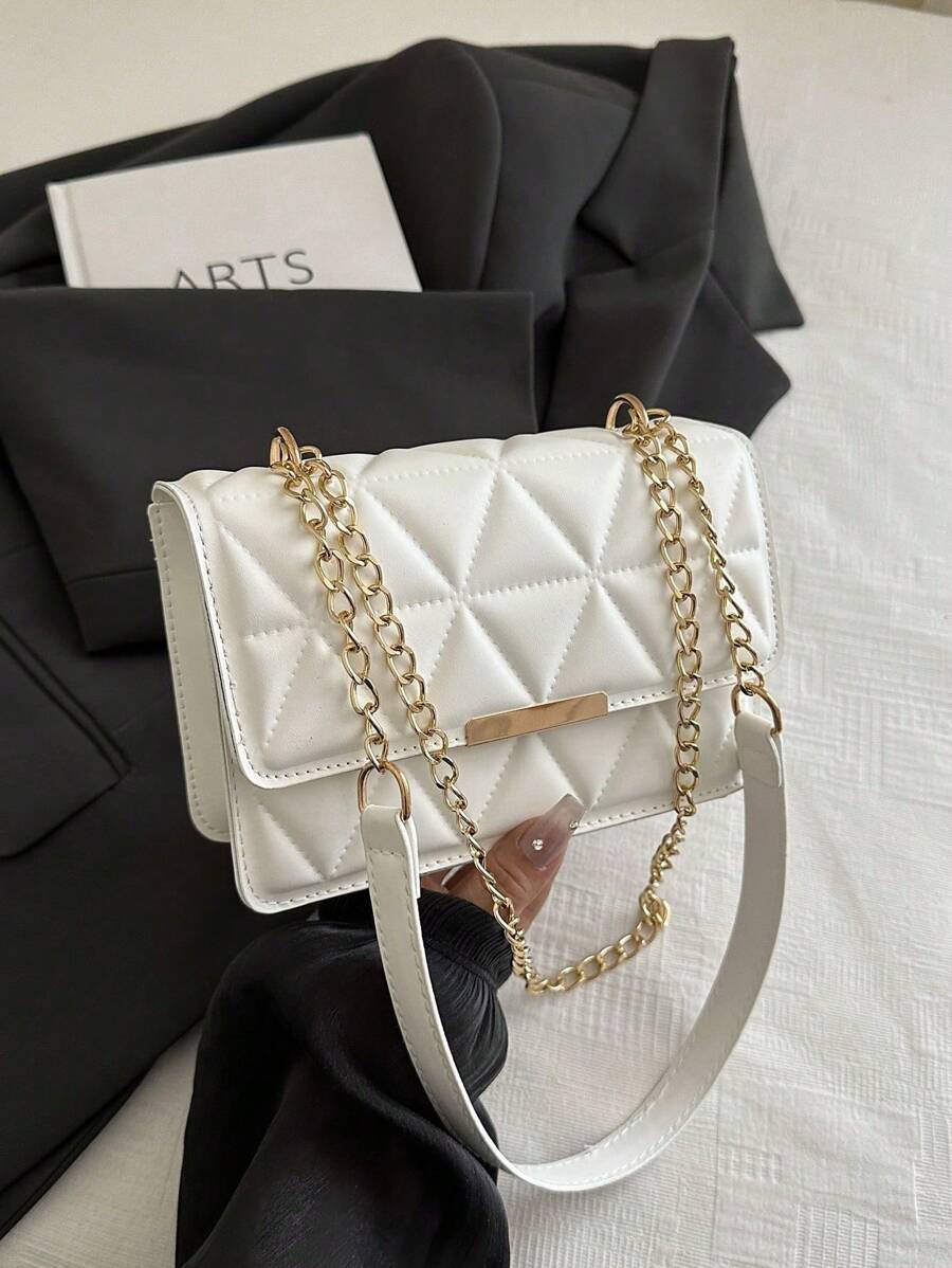 1pc Women's Fashion Solid Color & Printed Wide Strap Hard Handbag & Shoulder Bag