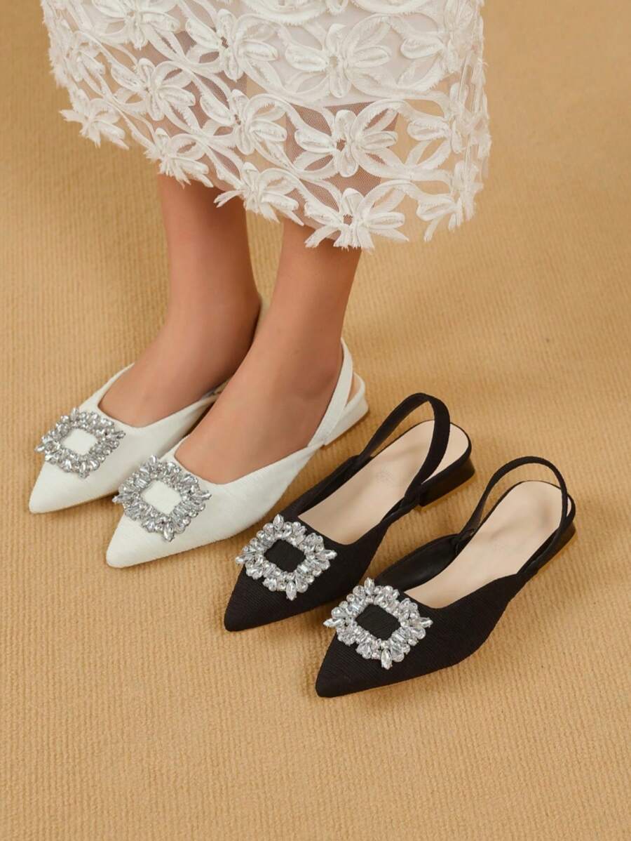 Summer New Fashion High Heel Shoes Rhinestone Closed Toe Backless Low-Heel Sandals In Stock