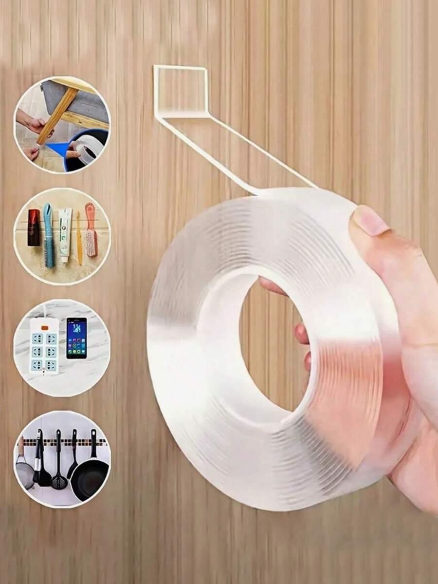1/3/5m Super Strong Double-Sided Transparent Tape, Waterproof Reusable Clear Double-Sided Adhesive Tape, Suitable For Kitchen & Bathroom Items, Waterproof Wall Stickers, Transparent Tape Strong Adhesive Tape
