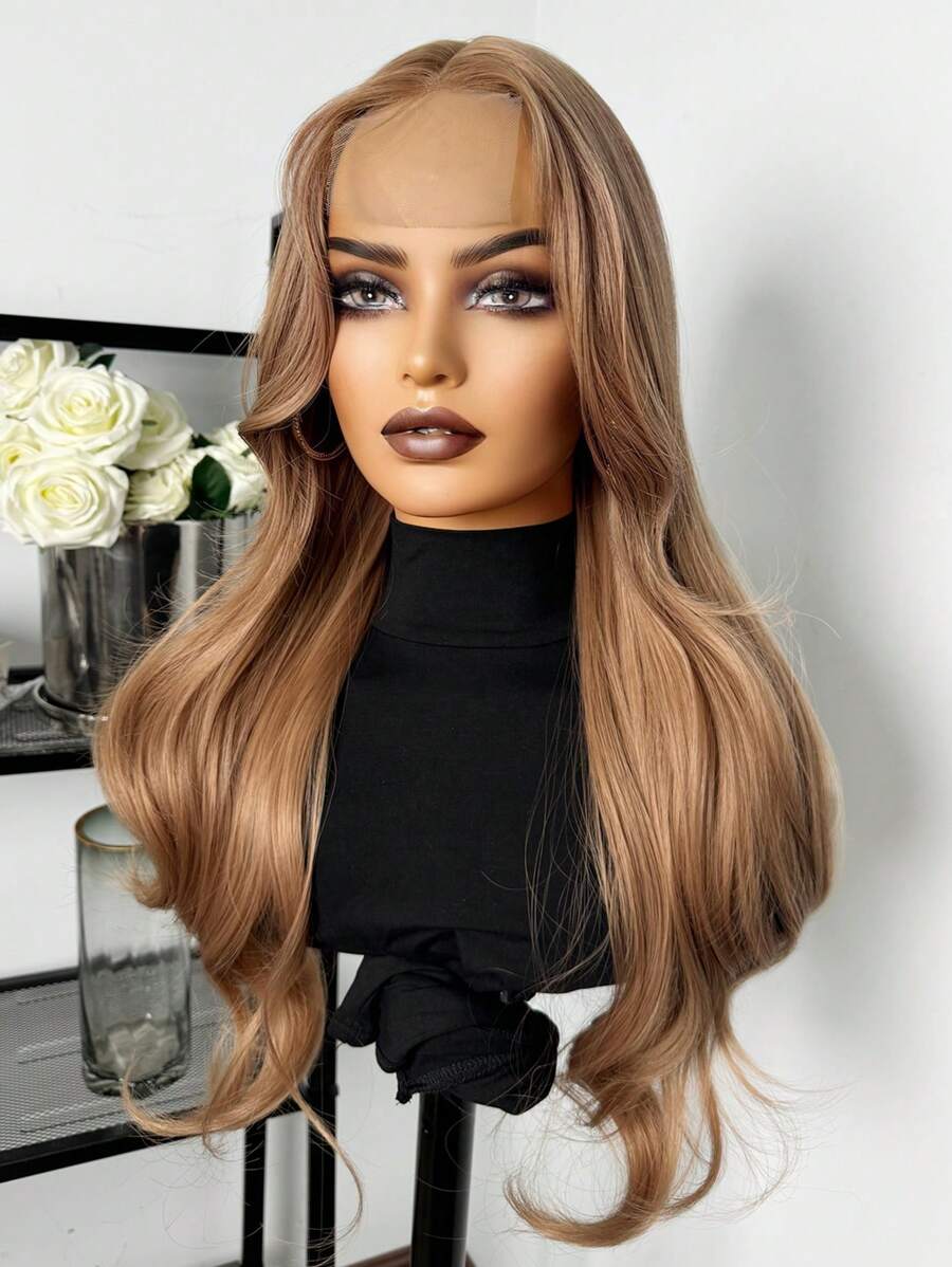 Synthetic Heat Resistant Champagne Gold Hair Wig U-Part Lace 26 Inch Champagne Gold Long Curly Wavy Wig For Daily Party Use