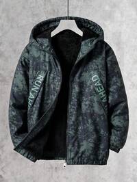 VacauraVacaura Teen Boys Casual Fashion Black White Gray Snowflake Letter Digital Print Hooded Thermal Lined Jacket, Loose Fit, Comfortable, Versatile, Suitable For Autumn, Spring, Winter, Daily Wear, Commuting, Outdoor, Sports, School, Streetwear, Party, Photography #1 Bestseller