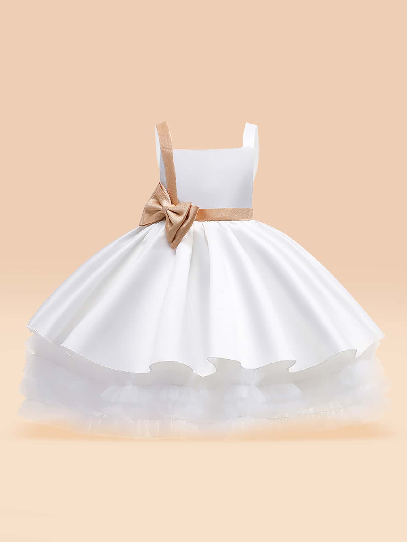 Young Girls' Satin Tulle Bow Decorated Puffy Dress With Elegant Style, Perfect For Evening Party Performance