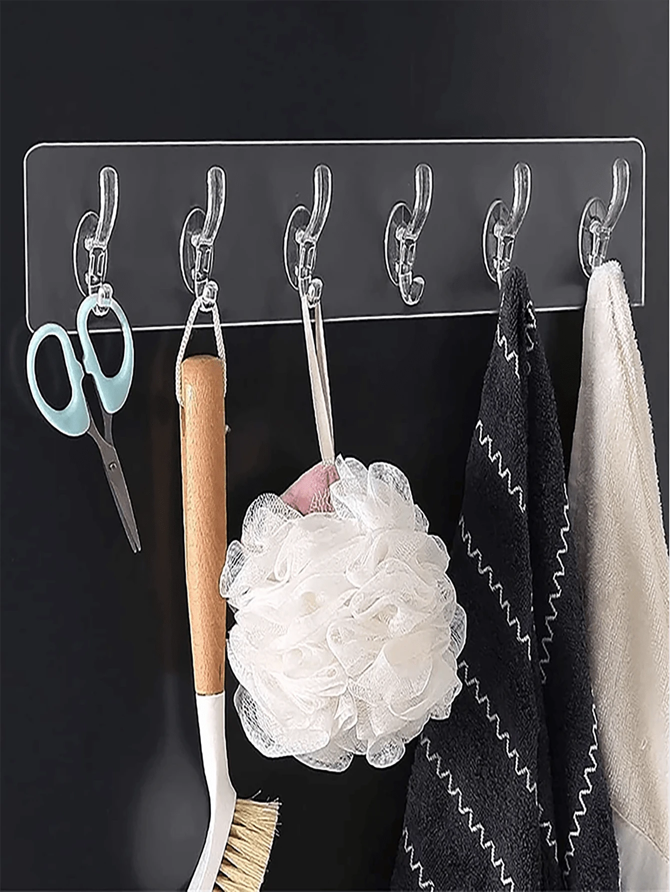 Transparent Adhesive Coat Rack Wall Mounted 6 Standard Hooks Wall Coat Rack Hangers For Bathroom Kitchen Closet Organizer