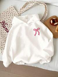 1pc Versatile White, Sweet Girly Pink Bow Embroidered Pattern Tween Girl Casual Comfortable Thick Soft Long Sleeve Sweatshirt, Suitable For Autumn/Winter Daily, Outings, Street Style, Campus, Holiday, Cozy Season, Autumn & Winter Outfits, Easy Comfort, Autumn & Winter Layers For Girls, Stylish Girls, Casual Wear, Kids Bow Graphic Clothes, Fall & Winter Clothes, Chic Autumn, Fall & Winter New Style, Homecoming, Winter Fashion, Chic