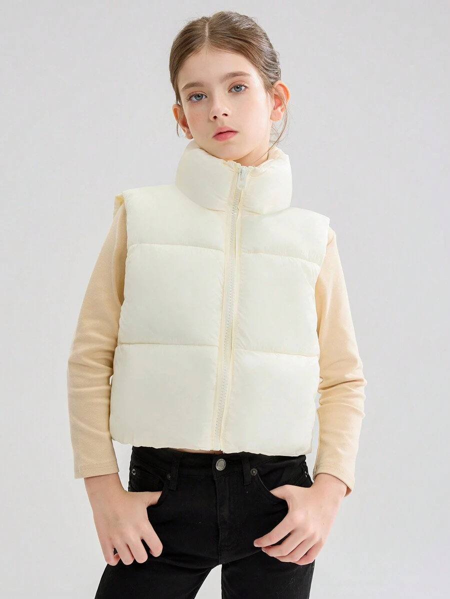 Tween Girls Short Lightweight Waterproof Padded Vest Winter Jacket, Sleeveless