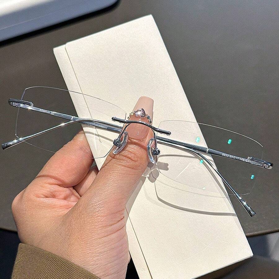 Ultra-Light Rimless Pure Titanium Glasses Frame For Men, Women, Square Shape, Non-Prescription Eyeglasses
