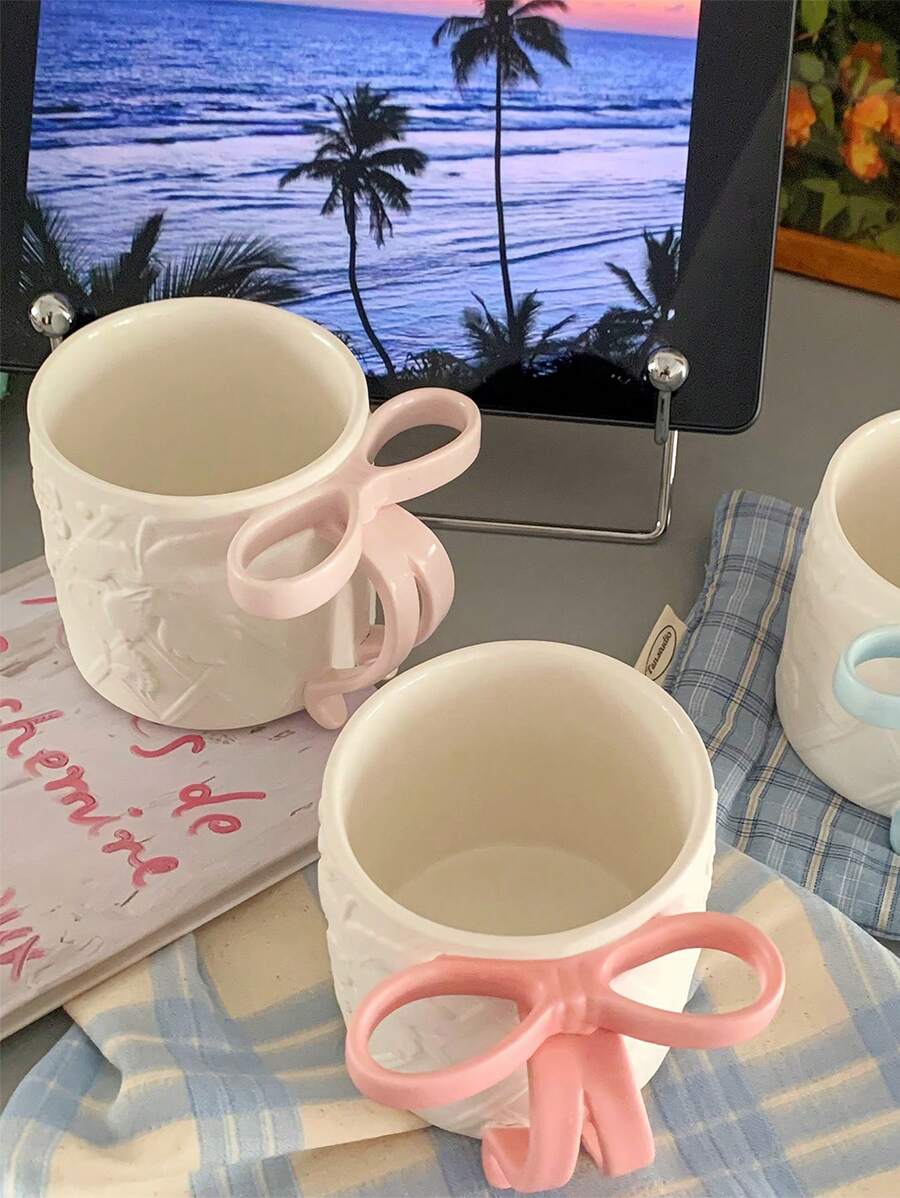 Unique 3D Bowknot Handle Ceramic Cup, Creative Girly Style Water/Milk/Coffee Mug
