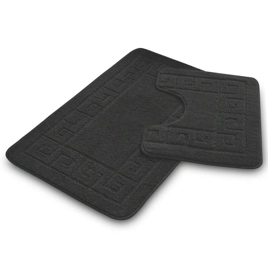 VELVETIO Bath Mat Set 2 Piece Non Slip Rubber Pedestal And Bath Mat Set Toilet Greek Bathroom Rug New