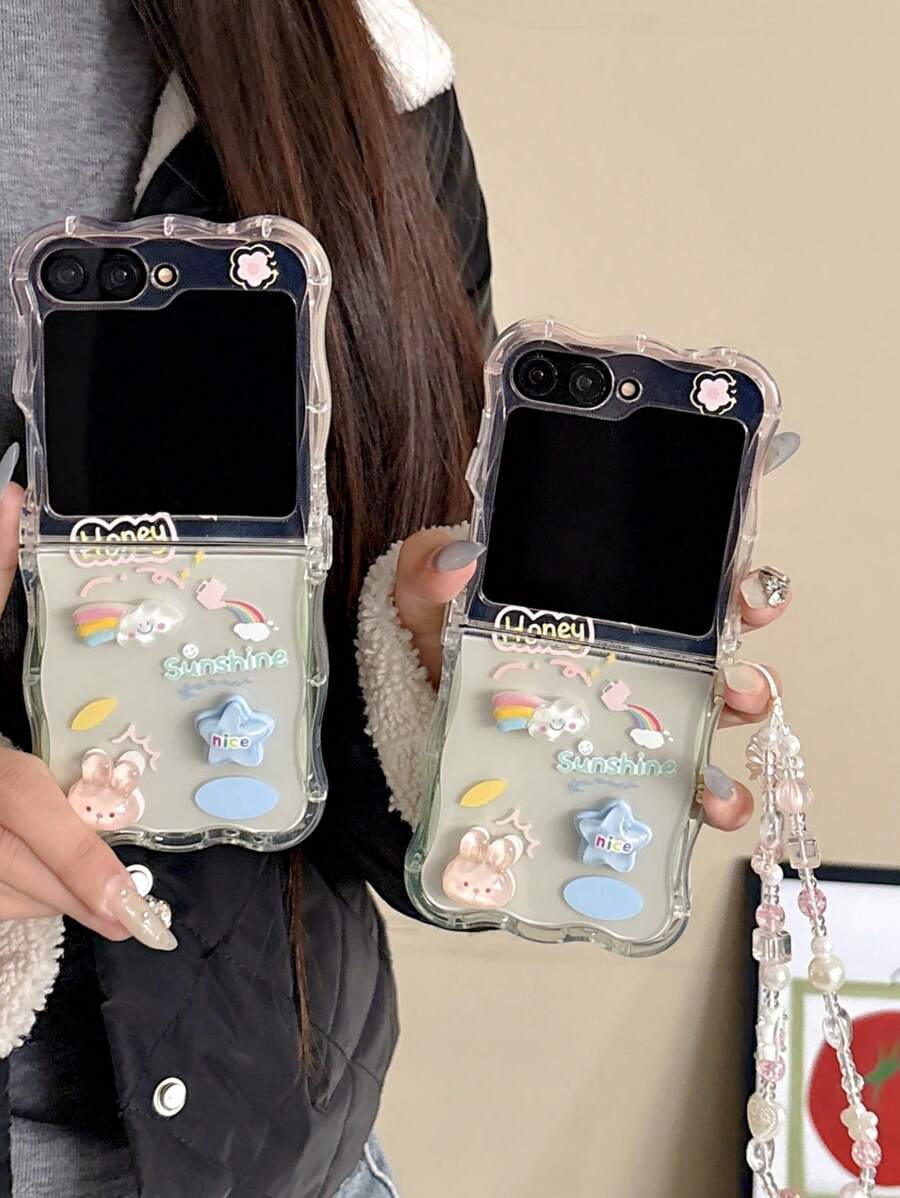Wavy Ripple & 3D Stars Design Transparent Cute Lightweight Thin Phone Case Compatible With Samsung Galaxy Z Flip Phone