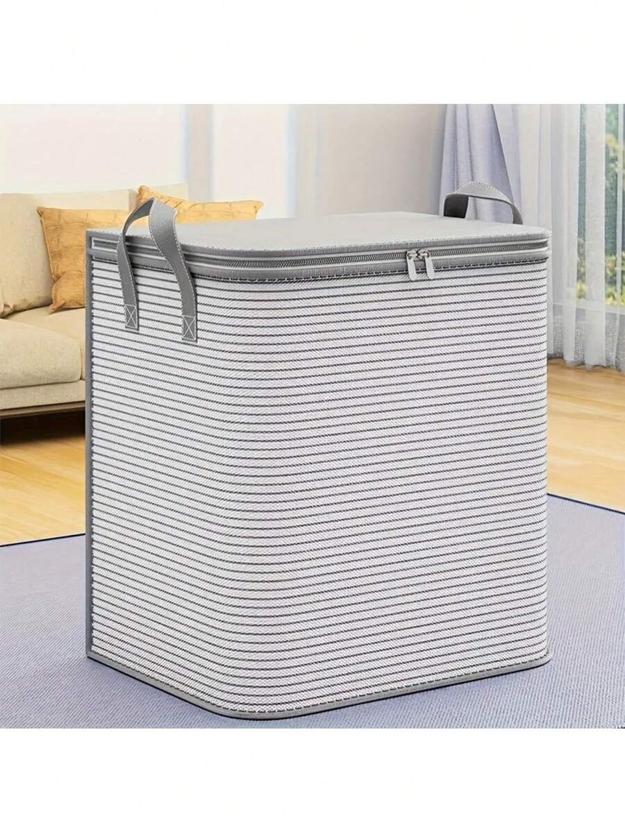 23.2in*22.8in Extra Large Clothes Storage Box, Foldable Blanket Storage Bag With Durable Handles, Gray And White Striped Design, Suitable As Gift For Friend, Bedroom Organization, Clothes Storage, Storage Container, Women Limited Time