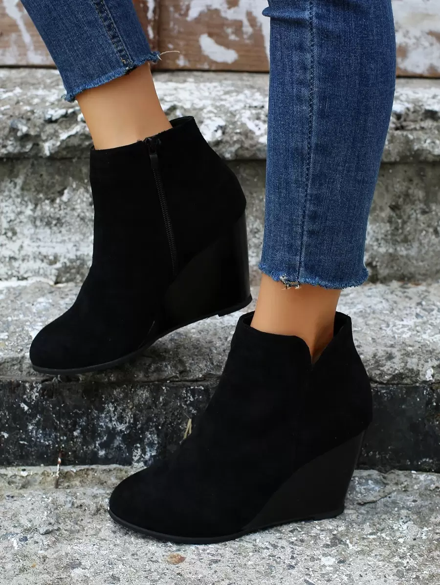 Women Thick Sole Wedge Ankle Boots Fashion Casual Side Zipper Winter Slip-On Short Black Booties,Boots For Women