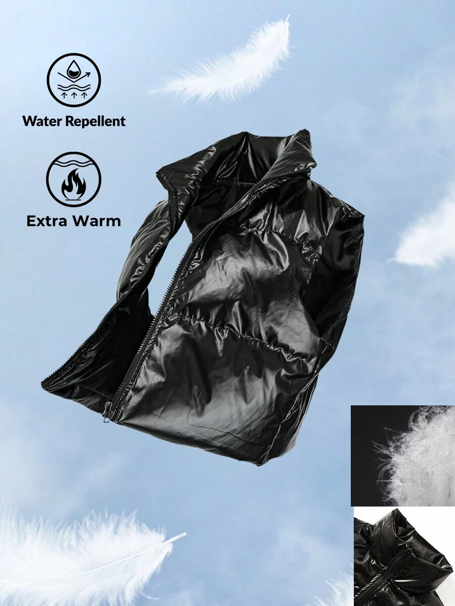 SHEIN Essnce Women Winter Plain Color Zipper Front Short Casual Down& Feathers Vest Jacket