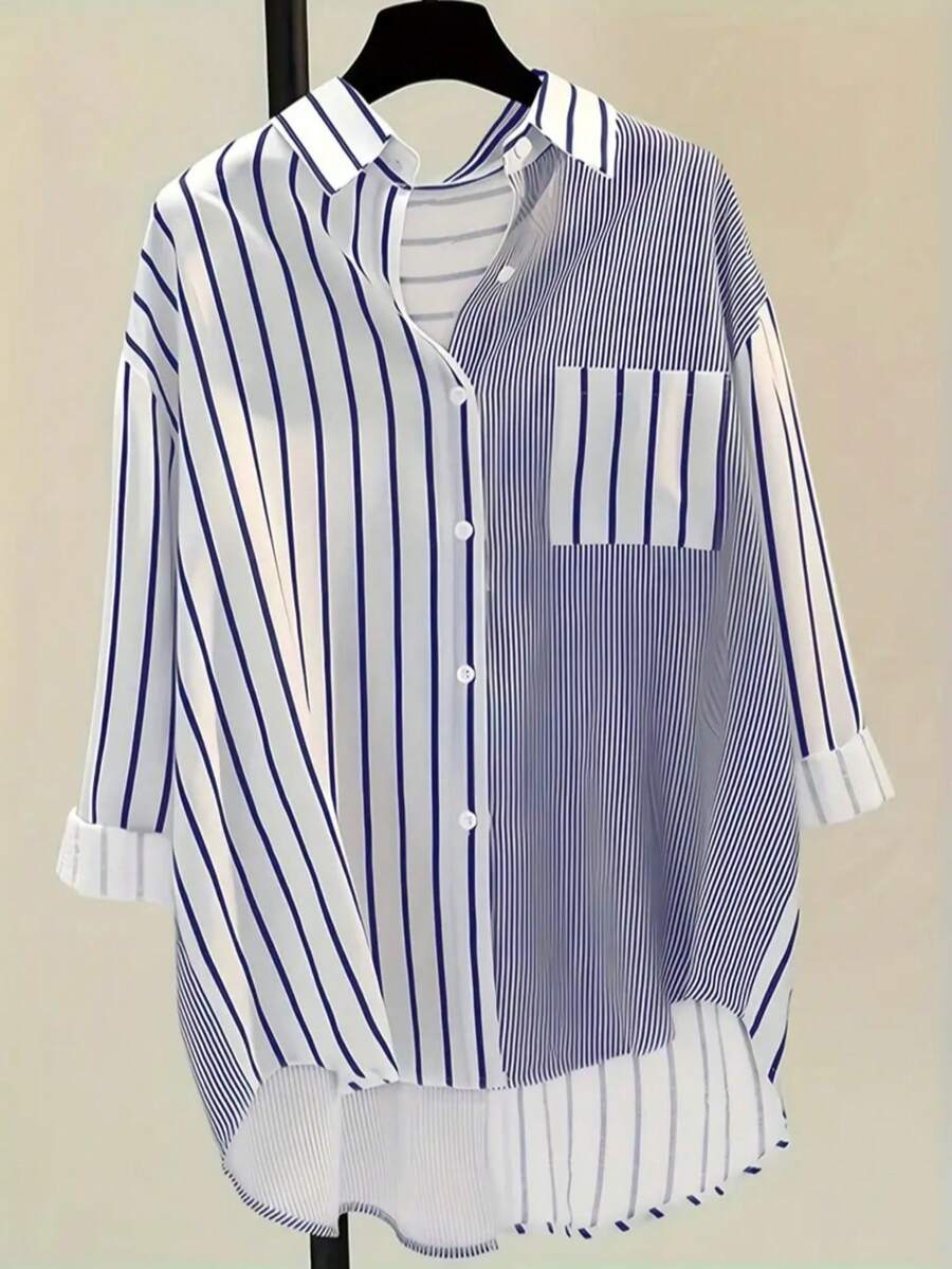 Women's Casual Simple Commuter Striped Patchwork Buttoned Shirt Spring, Summer, Autumn, Winter Top