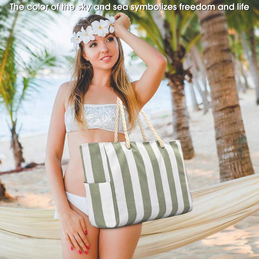 Large Waterproof Beach Tote Bag For Women, With Zipper, Anti-Sand, Suitable For Swimming Pool, Random Pattern