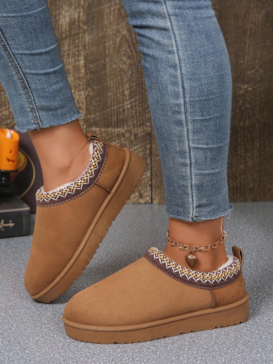 Women's Mini Ankle Boots - Comfortable Faux Suede Wool Lined Winter Boots, Non-Slip Lightweight Ankle Booties, Suitable For Cold Weather, Fashionable Comfortable Casual Shoes, Available In Black, Beige, Brown - Perfect For Daily Wear, Outdoor Activities And Holiday Outfits. Women's Slippers