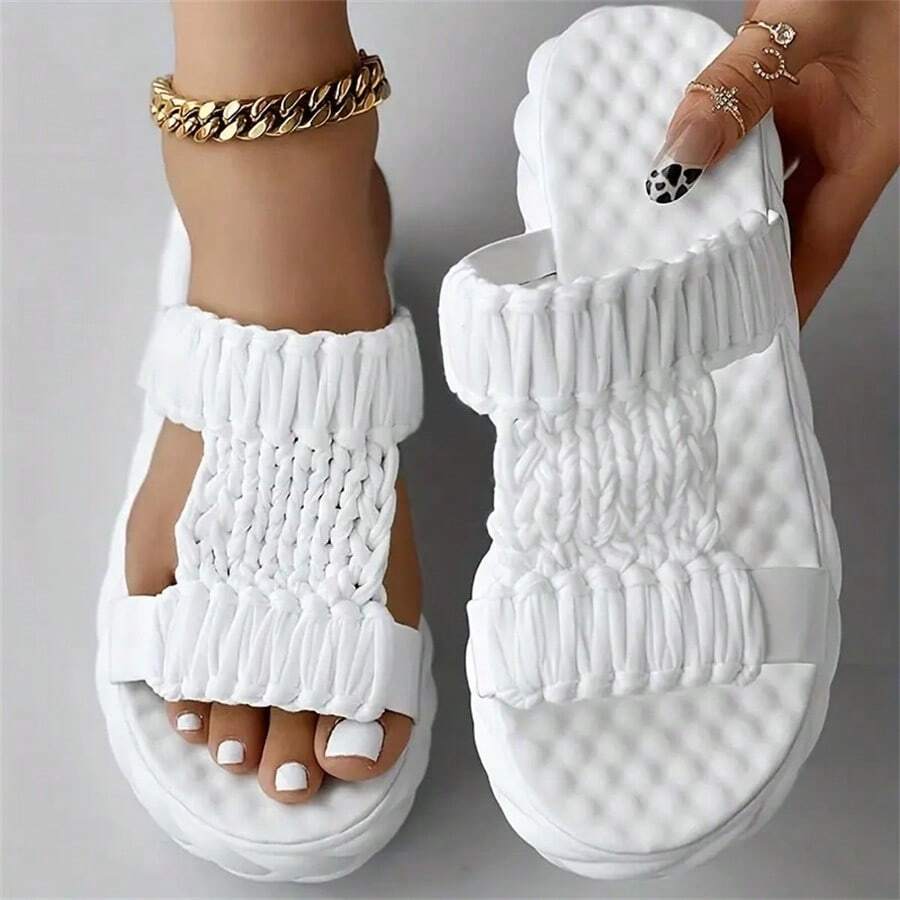 Women's Solid Color Braided Sandals, Slip On Soft Sole Platform Daily Shoes, Versatile Summer Comfy Slides Shoes
