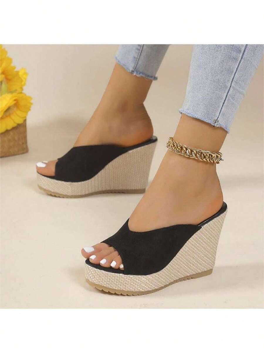 Women's Thick-Soled Peep Toe Imitation Bottom Sandals, Black Waterproof Platform And Slip-Resistant, Summer Style