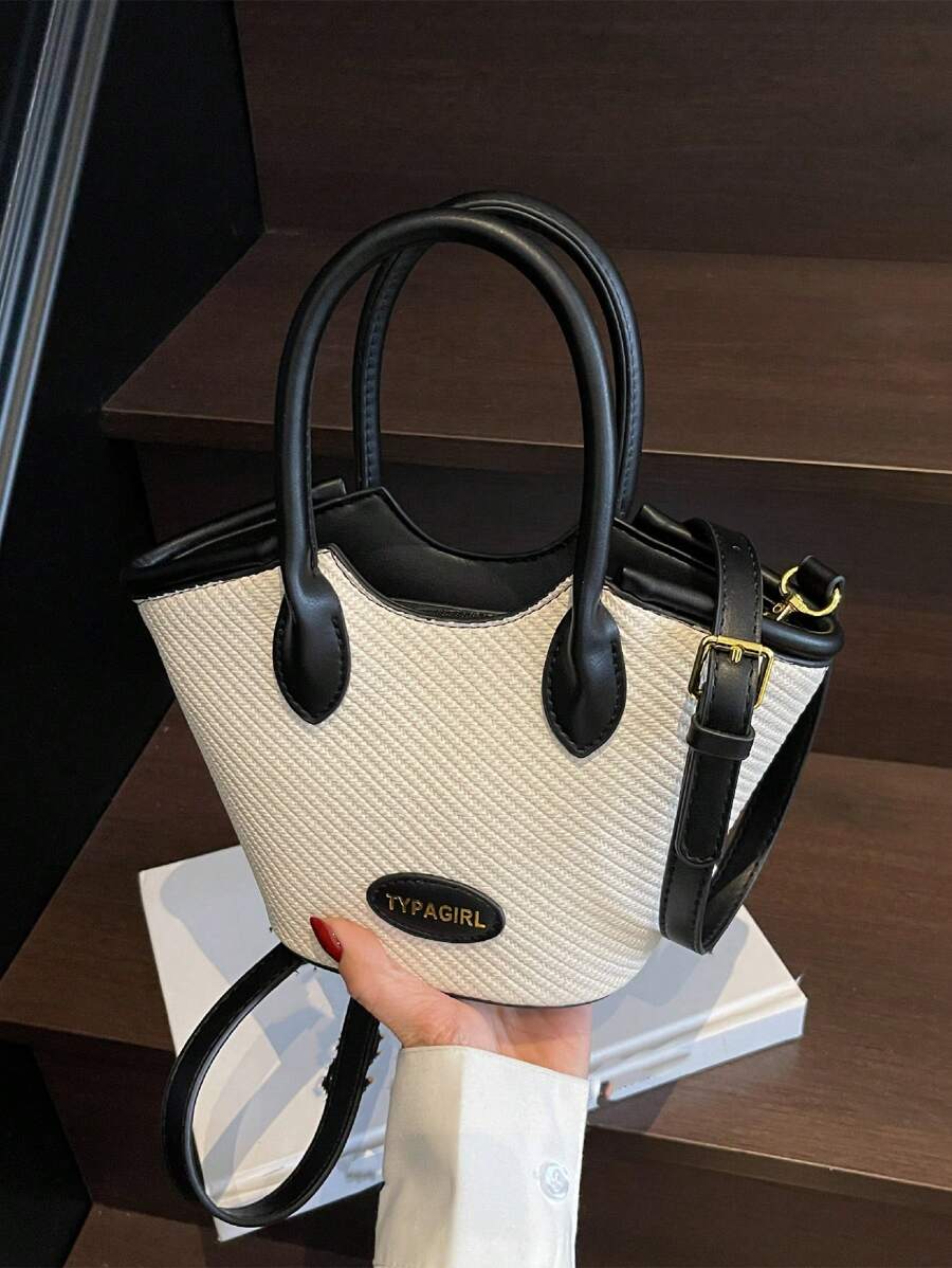 Women's Tote Basket Style Handbag, Retro Color Block Commuter Crossbody Bag For Work