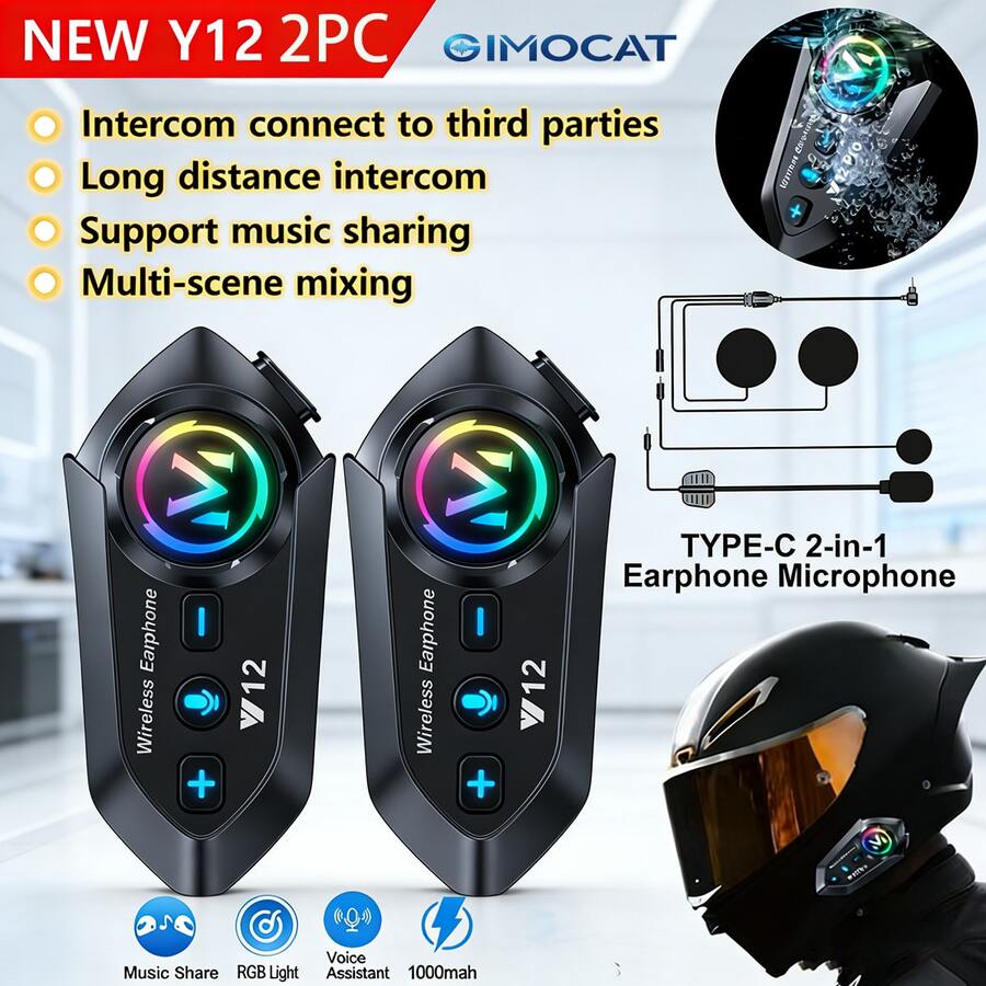 Y12 Casco Para Moto Motorcycle Headset,Helmet Headsets, Bluetooth 5.3 Fast Connection, 500mAh Battery, Smart Noise Cancellation, Lightweight Design, Essential For Riders, Motorcycle Bluetooth Headset