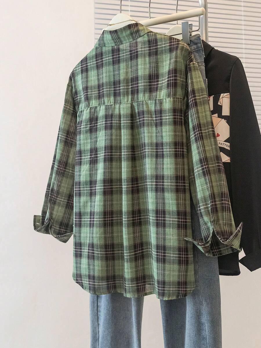 YUXIN Women's Retro Green Plaid Shirt For Spring & Summer, Loose BF - Style Sunscreen Jacket, Versatile & Slimming For Commuting And Outings
