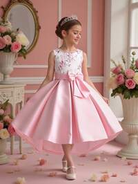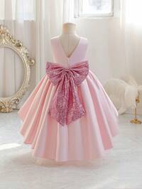 SHEIN Girl's Princess Dress, Flower Girl, Sleeveless, White Satin Mesh Fluffy Dress, Houfu Big Bow, Three-Dimensional Flower, Vacation, Partywear, Valentine's Day, Birthday Dress, New Year's, Birthday Party Dress, Wedding Holiday Dress, Gorgeous Dress Dress, Middle East, Europe And America #5 Bestseller
