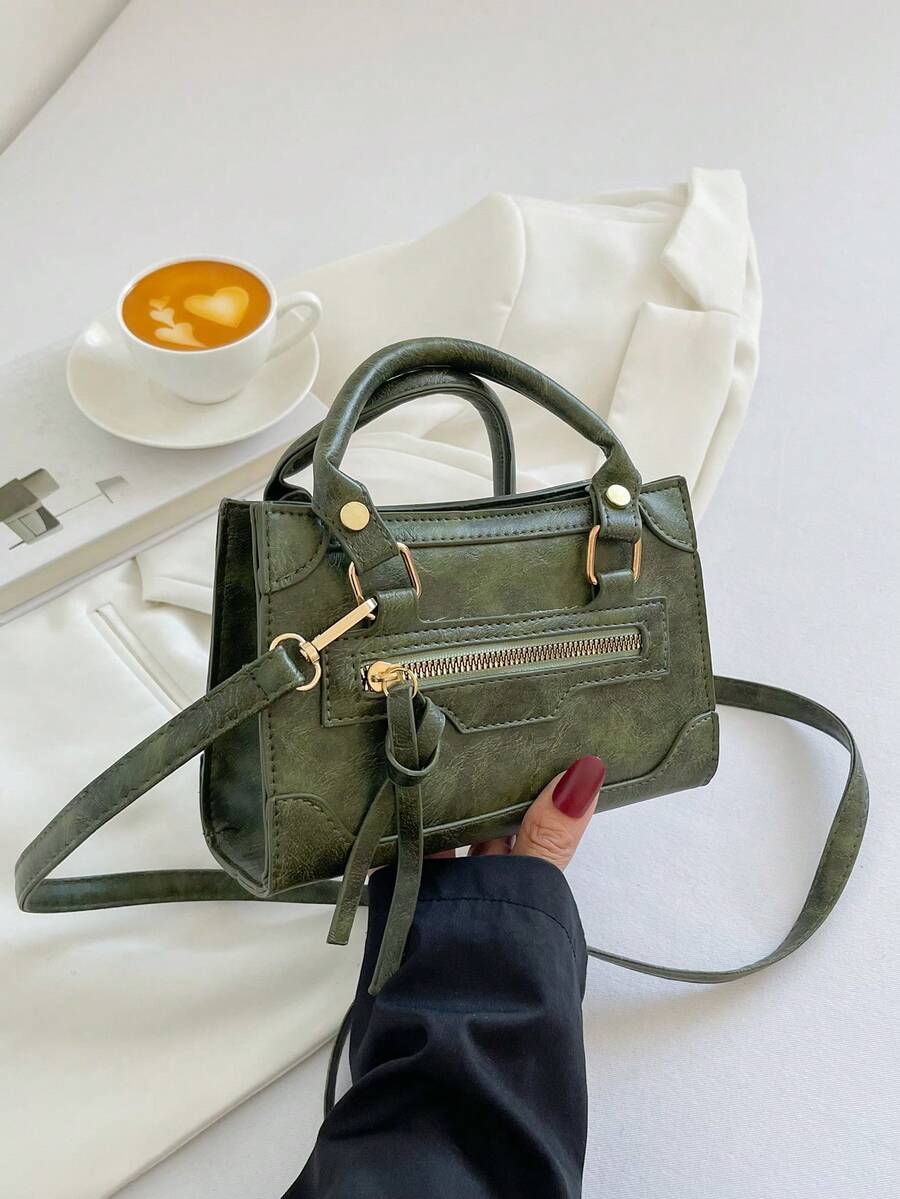 New Fashion Women's Handbag, Mixed Fabric With Rivet Decor, Large Capacity Square Bag, Stylish & Versatile, Retro Chic Tote Bag With Detachable & Adjustable Shoulder Strap