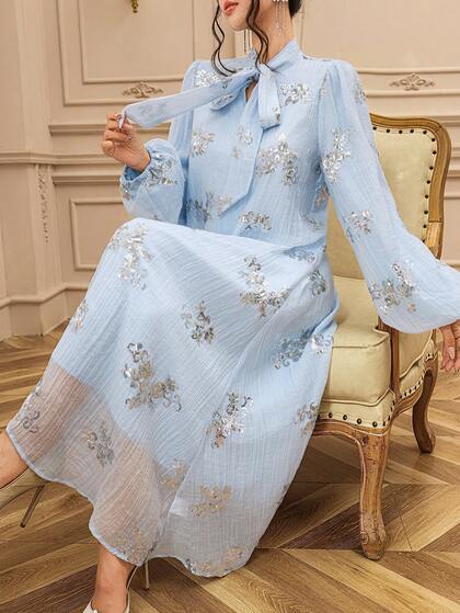 DAZY Sequin Embroidered Loose Flare Sleeve Elegant Dress For Women, Suitable For Banquet, Spring/Autumn