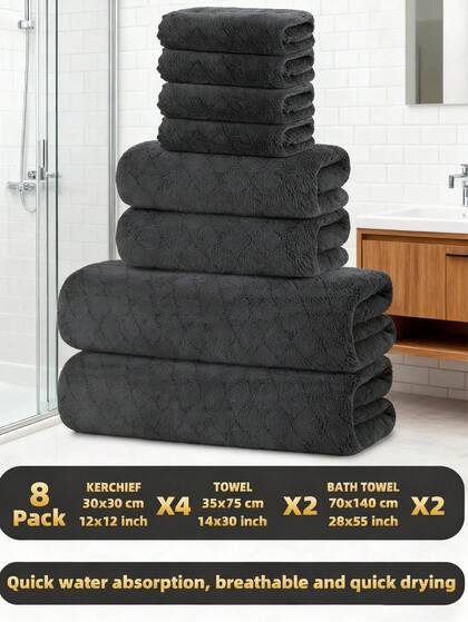 8pcs Set [4 Handkerchiefs + 2 Face Towels + 2 Bath Towels] Coral Fleece European Floral Print, Soft & Comfortable, Absorbent & Quick Drying, Suitable For Bathing, Face Washing, Sports, Fitness, Travel, Etc.