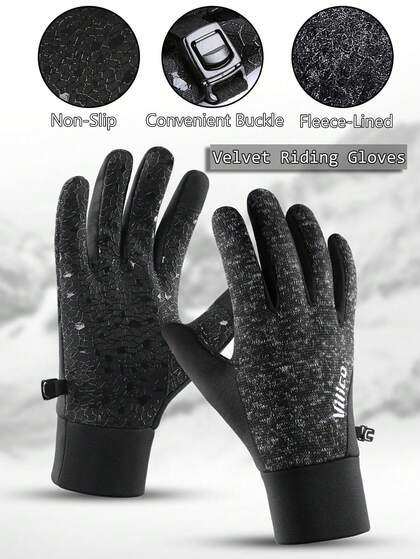 1 Pair Autumn And Winter Thick Velvet Sports Outdoor Running Gloves, Men's Warm Touch Screen Cycling Gloves, Made Of Polyester Fiber Material, Essential For Warmth, A Pair Of Simple And Multifunctional Velvet Gloves, Convenient Buckle Design, Suitable For Men, Windproof And Cold Resistant, Silicone Palm Design, Suitable For Cycling, Running, Mountaineering, Fishing, Skiing. Hand Warmer