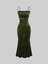 Sweetra 1pc Women Solid Color Ruffle Fishtail Hem Elegant Spaghetti Strap Dress For Holiday Party Clothes Maxi Velvet Women Outfit