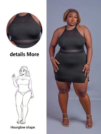 Hourglow Christmas Plus Size Sequin Decor Elegant Sleeveless Dress