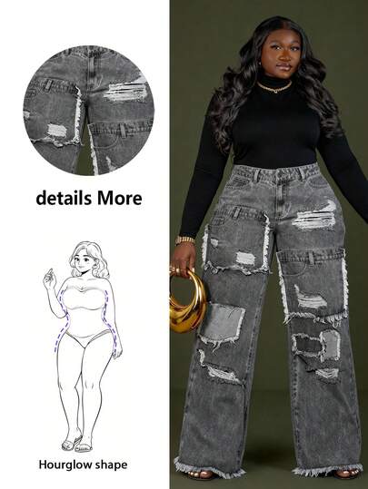 SHEIN BAE Plus Size Mid-Waist Solid Color Casual Slim-Fit Jeans, For Pear Triangle Body Shape/2026 /New Year