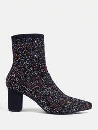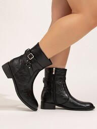 CUCCOO BIZCHIC Women's Pointed Toe Mid Heel Faux Suede Ankle Boots With Back Zipper, Suitable For Party, Daily Wear, Evening Dress, Height Increasing And Leg Lengthening, Black